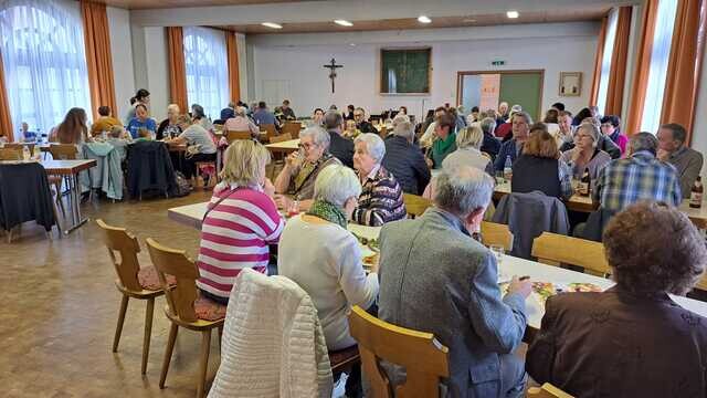 Am Nachmittag wurden Kaffee, Kuchen, kühle Getränke und Federweißer angeboten. Den Abschluss bildete eine Filmvorführung. Herr Hartmut Wesser hatte den Jubiläumsfilm "900 Jahre Thüngersheim" aus dem Jahr 1998 digitalisiert und ihn der Pfarrei zur Verfügung gestellt. Dabei wurden Erinnerungen an dieses große Ortsjubiläum wach und ein reger Austausch fand unter den Anwesenden statt, über die kleinen und großen Veränderungen seit dem im Ort und wie sich der ein oder andere seither verändert hat.